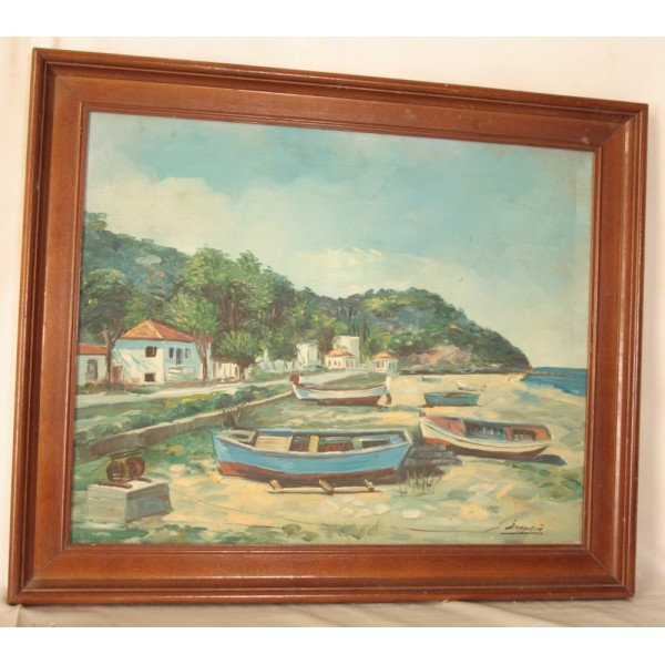 Πίνακας βάρκες στην άμμουδια
