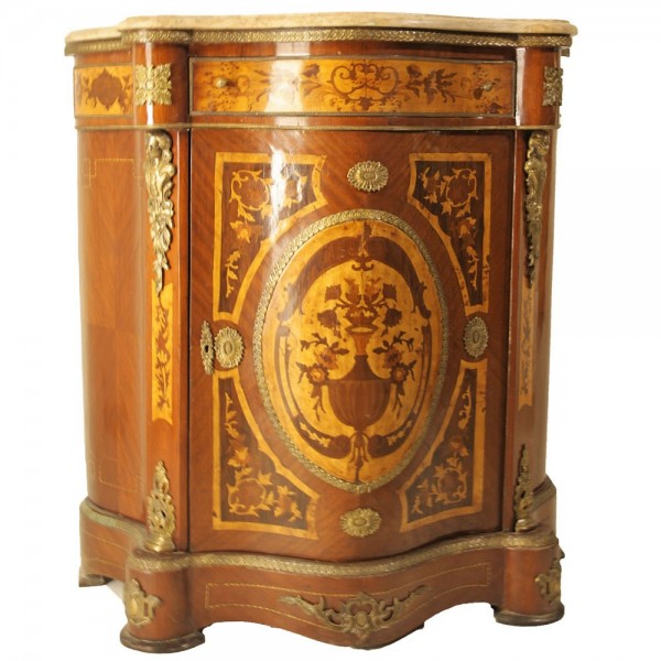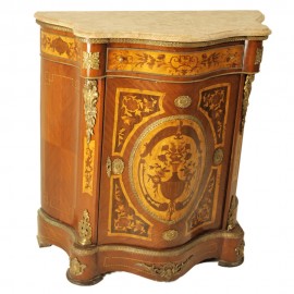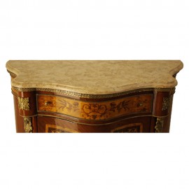 Μπαγιού κλασικό με μαρκετερί σε συνδυασμό μπρούτζινων διακοσμήσεων στην επιφάνεια του με μάρμαρο σε μασίφ ξύλο καρυδιάς. Ιδανικό για όλους τους χώρους του σπιτιού.