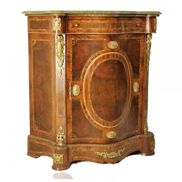 Μπαγιού κλασικό με μαρκετερί σε συνδυασμό μπρούτζινων διακοσμίσεων στην επιφάνεια του με μάρμαρο σε μασίφ ξύλο καρυδιάς. Ένα περίτεχνο κλασικό έπιπλο. Ιδανικό για όλο το σπίτι και ιδιαίτερα ταιριαστό σε Vintage Ρετρό διακοσμήσεις