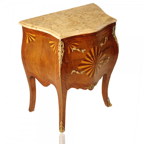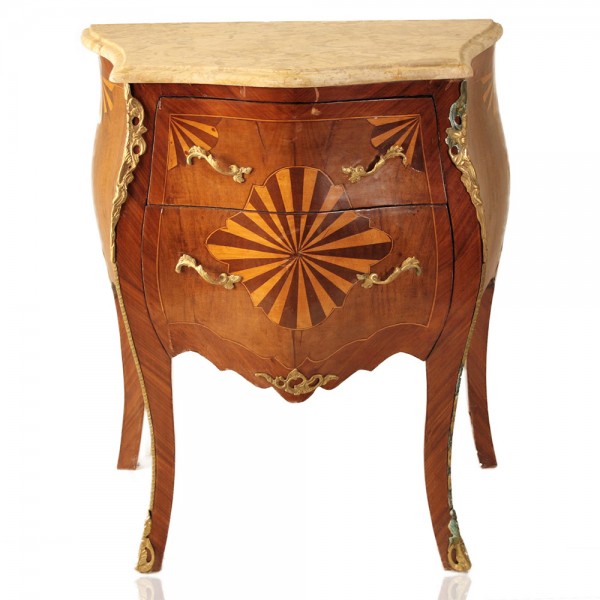 Κομό μαρκετερί σε κλασικό σχεδιασμό με μπεζ μάρμαρο και μπρούντζινα στοιχεία το διακοσμούν στις επιφάνειες του κλασικό κομμάτι το οποίο μπορεί να σταθεί σε όλους τους χώρους του σπιτιού και σε όλες τις διακοσμήσεις.