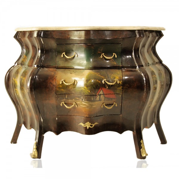 Κομό Ζωγραφικής χειροποίητο ένα πολύ περίτεχνο κομμάτι με την ζωγραφική στην επιφάνεια του ξύλου ιδιαίτερο σχέδιο με τρία (3) συρτάρια, μάρμαρο και μασίφ ξύλο καρυδιάς .Ένα κλασικό έπιπλο για ιδιαίτερες καλιτεχνικές διακοσμήσεις.