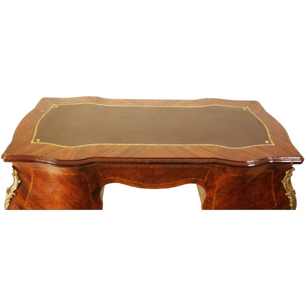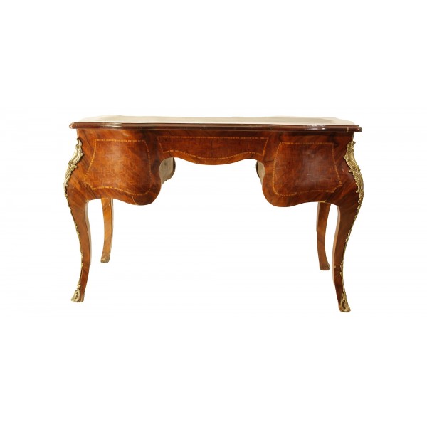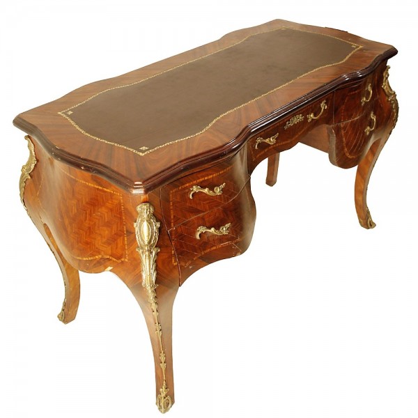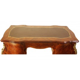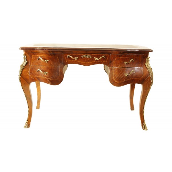 Γραφείο εποχής Λουδοβίκου σε περίτεχνο σχεδιασμό και ιδιαίτερη ξυλογλυπτική στο χέρι, μασίφ ξύλο καρυδιάς, μπρούτζινες διακοσμήσεις και δερμάτινη επιφάνεια για την καλύτερη πρόσφυση των εγγράφων σας. Ιδανικό για τους χώρους γραφείου, σαλονιού του σπιτιού ή καταστήματος σας και ιδιαίτερα ταιριαστό σε κλασικές, Vintage και Ρετρό διακοσμήσεις.