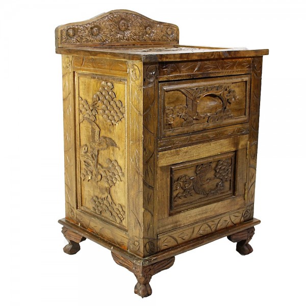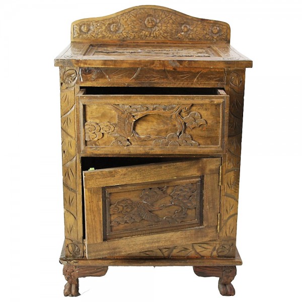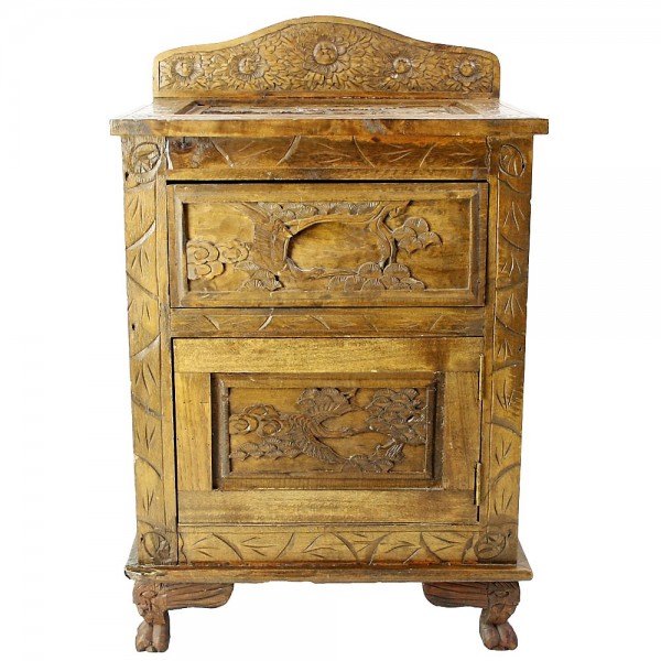 Κομοδίνο με περίτεχνα σκαλίσματα ασιατικό στύλ σε μασίφ ξύλο αι φυσικές τεχνικές χρωματισμού ταιριαστό σε όλες τις διακοσμήσεις.