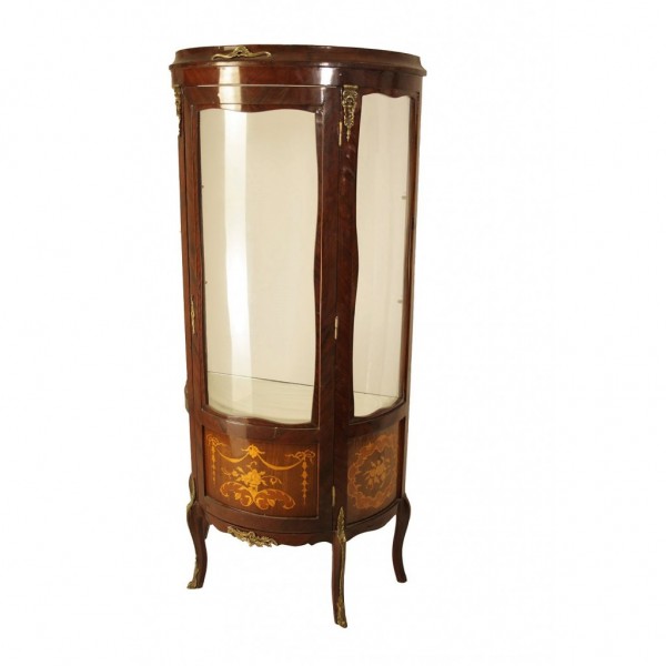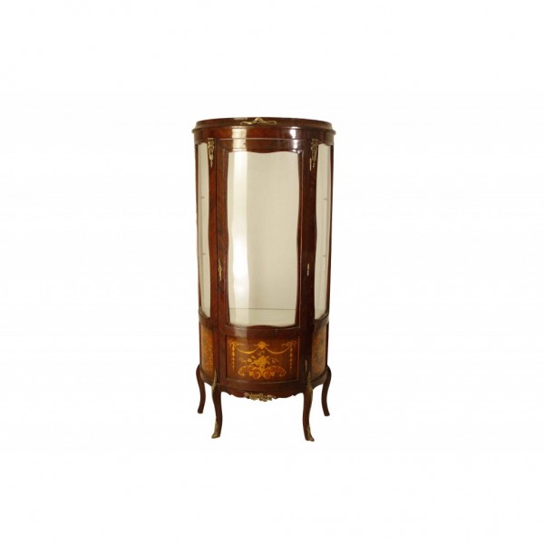 Βιτρίνα χειροποίητη σε μασίφ ξύλο καρυδιάς σε λιτό σχεδιασμό με πομπέ κρύσταλλο περίτεχνα σχεδιασμένη μαρκετερί στην επιφάνεια της και μπρούτζινες διακοσμήσεις. Ιδανική για όλους τους χώρους του σπιτιού, το γραφείο και το κατάστημα. Έπιπλο ιδιαίτερα ταιριαστό σε Vintage και Ρετρό διακοσμήσεις