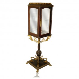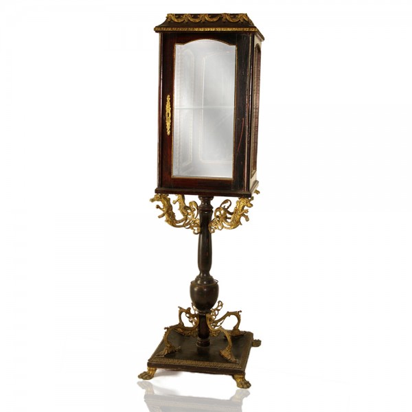 Βιτρίνα χειροποίητη κλασική με έντονο το στοιχείο του μπρούτζου, καθρέφτη στο εσωτερικό της σε περίτεχνο σχεδιασμό. Ιδανική για όλους τους χώρους του σπιτιού, το γραφείο και το κατάστημα. Έπιπλο ιδιαίτερα ταιριαστό σε Vintage και Ρετρό διακοσμήσεις