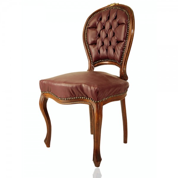 Καρέκλα χειροποίητη στυλ Λουδοβίκου μπρούτζινη διακόσμήση καπιτονέ ύφασμα χρωματισμός παροδοσιακού λούστρου σε μασίφ ξύλο καρυδιάς και ύφασμα υψηλής ποιότητας. Ιδιαίτερα ταιριαστό σε Vintage και Ρετρό διακοσμήσεις.