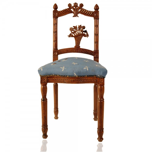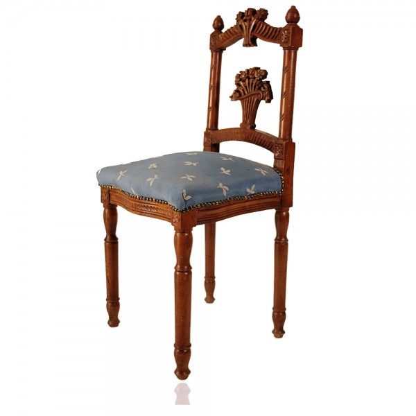 Καρεκλάκι μικρό χειροποίητο κλασικό με περίτεχνα σκαλίσματα στο χέρι σε μασίφ ξύλο καρυδιάς και παραδοσιακή τεχνική χρωματισμού λούστρου. Ιδανικό σε Vintage και Ρετρό διακοσμήσεις.